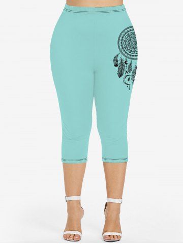 a*****r5Feather Moon Dreamcatcher Printed Cinched Tank Top and Capri Leggings Plus Size OutfitColor: LIGHT BLUEthe pants make amazing maternity pants as they have a lot of give in the waist band. they are very comfortable. the top fits so nice and the cleavage is adjustable