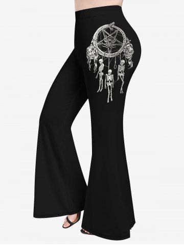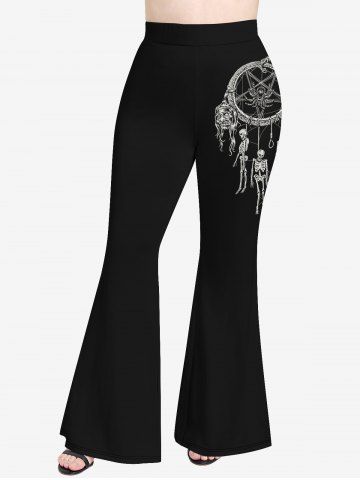 Plus Size Dreamcatcher Snake Spider Skeleton Print Halloween Flare Pants - Black - 4x