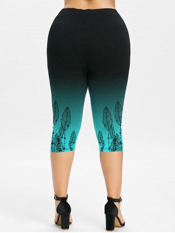 Graphic Leggings > Plus Size Feathers Printed Ombre Capri Leggings