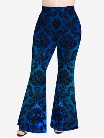 t*****a5Plus Size Figure Print Flare PantsColor: DEEP BLUE Size: 1X | US 14-16bought this to wear with a blue shirt i already had, love that there are different shades of blue in it! so comfy and pretty