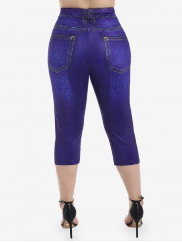 Graphic Leggings > Plus Size Floral 3D Denim Print Capri Jeggings