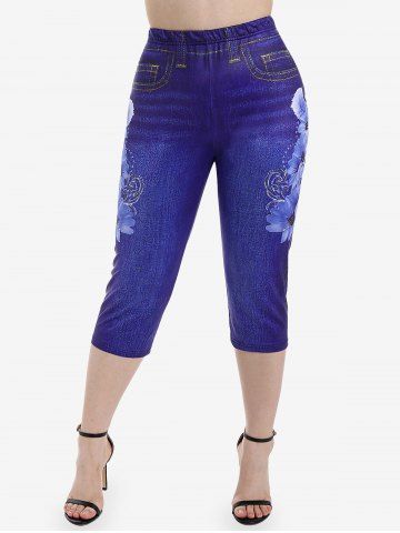 A*****a4Plus Size Floral 3D Denim Print Capri JeggingsColor: BLUE Size: 3X | US 22-24Beautiful fabric and very soft. Fits perfectly and comfortably. I love it.