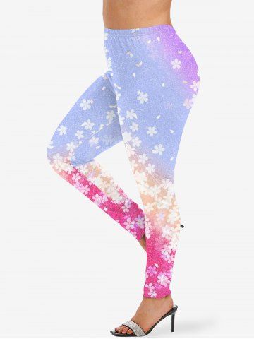 Graphic Leggings > Plus Size Floral Ombre Striped Colorblock Print Skinny Leggings