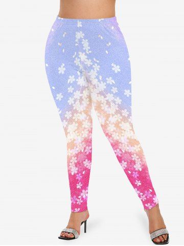 Graphic Leggings > Plus Size Floral Ombre Striped Colorblock Print Skinny Leggings
