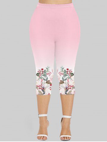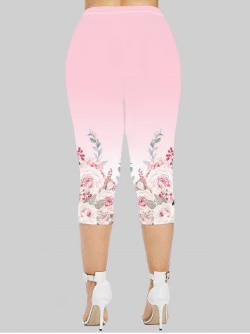 Plus Size Floral Print Capri Leggings - Light Pink - 5x | Us 30-32