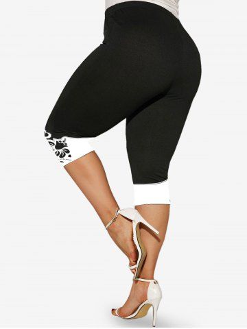 Plus Size Floral Print Colorblock High Waist Capri Leggings - Black - 4x | Us 26-28