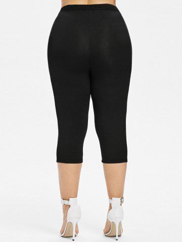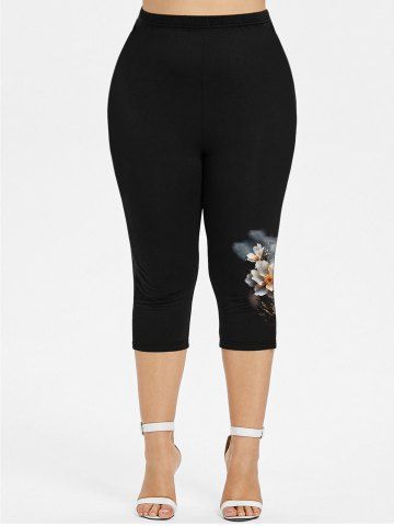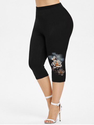 Plus Size Flower Fog 3D Print Capri Leggings - Black - 2x