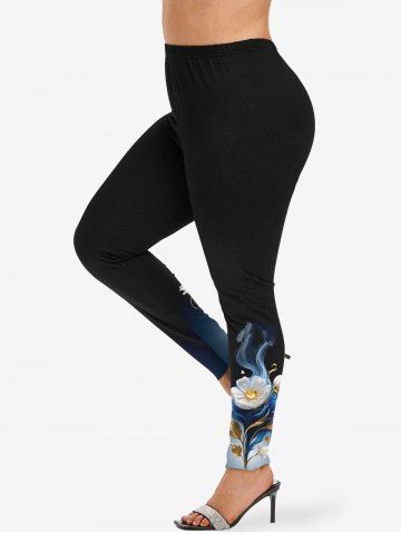 Graphic Leggings > Plus Size Flower Leaf Fog Ombre Colorblock 3D Print Leggings