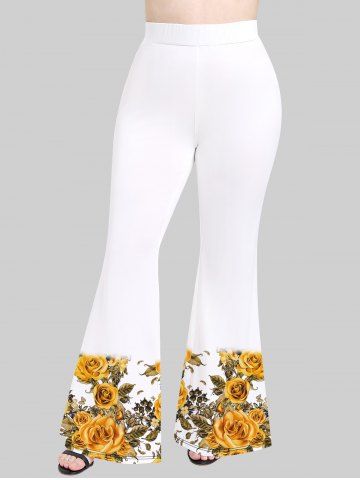 Plus Size Flower Leaves Print Flare Pants - White - 1x
