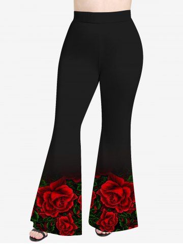 Plus Size Flower Leaves Print Flare Pants - Black - M