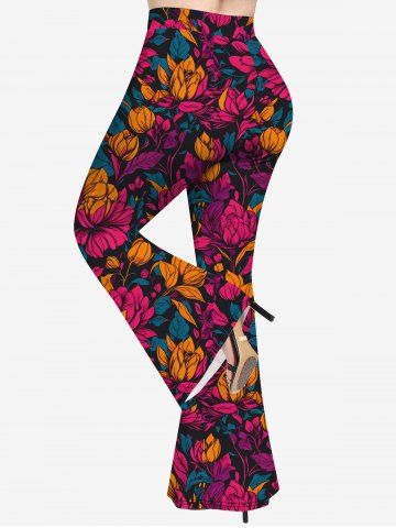 Graphic Leggings > Plus Size Flower Print Flare Pants