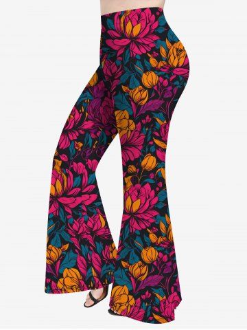 Graphic Leggings > Plus Size Flower Print Flare Pants