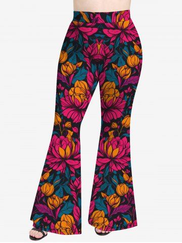 Graphic Leggings > Plus Size Flower Print Flare Pants