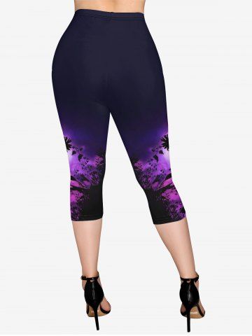 Renaissance Plus Size Galaxy Angel Moon Plant Print Capri Leggings - Purple - 5x