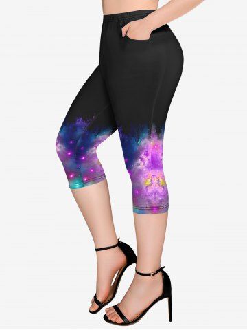 Graphic Leggings > Plus Size Galaxy Glitter Print Pockets Capri Leggings