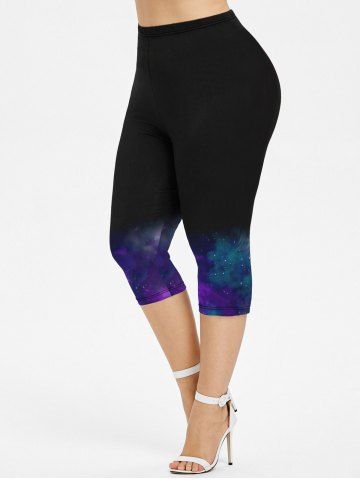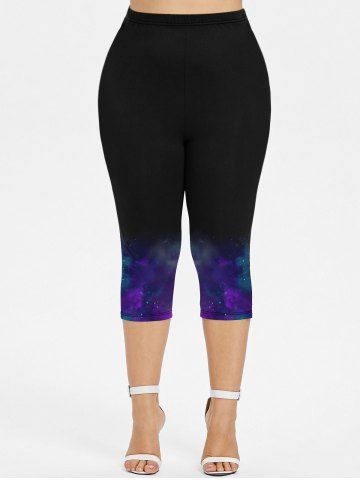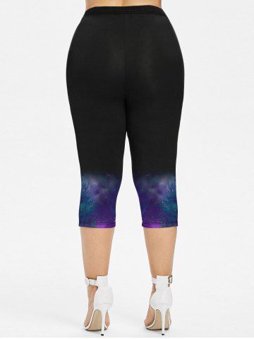 Plus Size Galaxy Print Capri Leggings - Purple - L