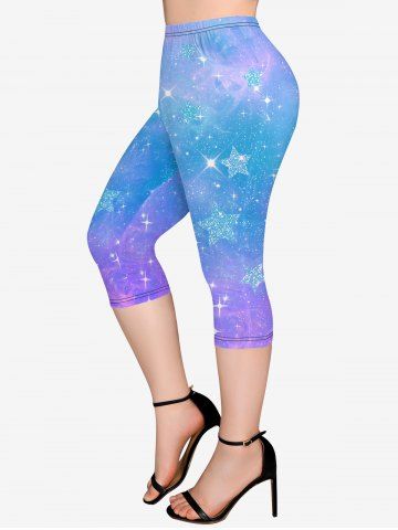 Graphic Leggings > Plus Size Galaxy Star Glitter Ombre Print Pockets Capri Leggings