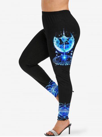Plus Size Galaxy Star Moon Rose Flowers Cross Glitter Sparkling Sequin 3D Print Leggings - Blue - 1x