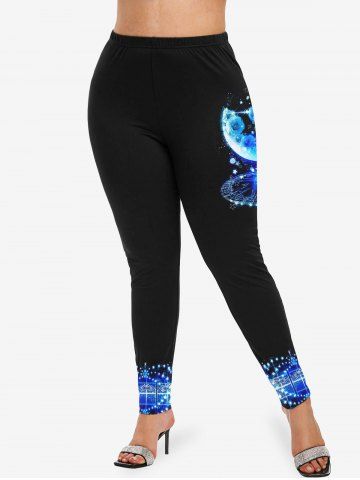 Plus Size Galaxy Star Moon Rose Flowers Cross Glitter Sparkling Sequin 3D Print Leggings - Blue - 2x