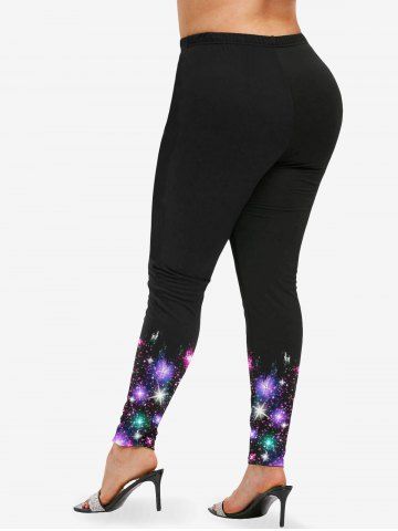 Plus Size Galaxy Star Sparkling Sequin Glitter 3D Print Leggings - Black - L