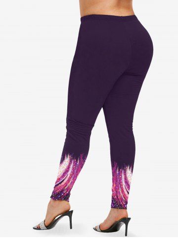 Graphic Leggings > Plus Size Galaxy Swirls Colorblock Print Leggings
