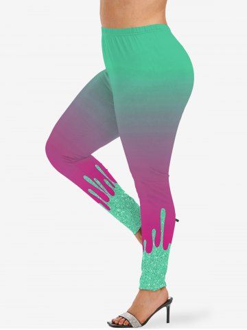 Plus Size Glitter Paint Drop Sequins Print Ombre Skinny Leggings - Multi-a - 1x