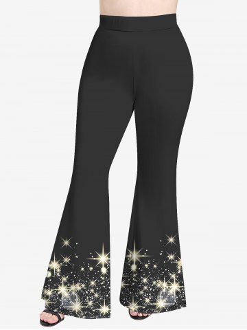 Plus Size Glitter Print Disco Flare Pants - Black - S