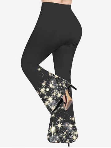 Graphic Leggings > Plus Size Glitter Print Disco Flare Pants