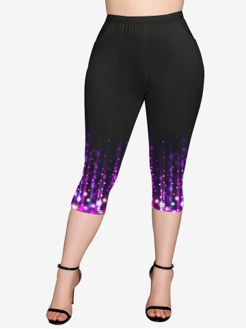 Plus Size Glitter Print Pockets Capri Leggings - Purple - 2x