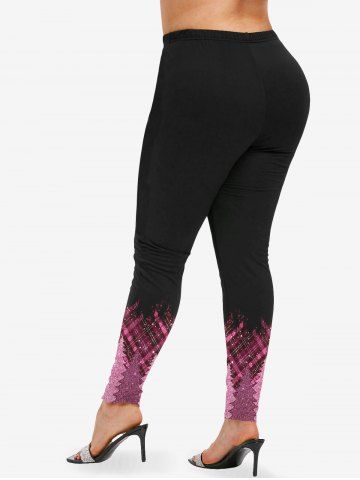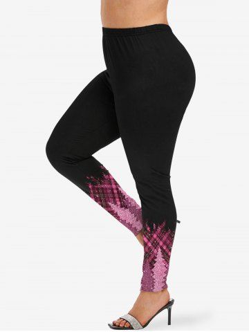 Plus Size Glitter Sparkling Christmas Tree Plaid Print Skinny Leggings - Light Pink - 1x