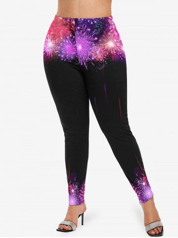 Plus Size Glitter Sparkling Firework Print New Year Skinny Leggings - Black - 5x