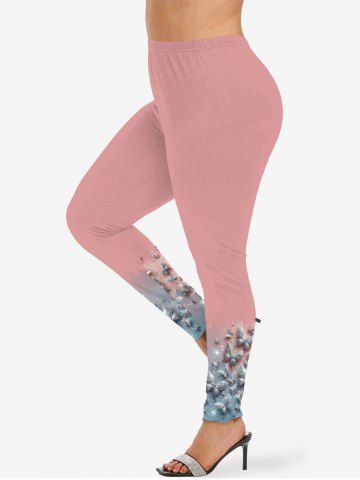 Plus Size Glitter Sparkling Rhinestone Butterfly Print Ombre Skinny Leggings - Light Pink - Xs