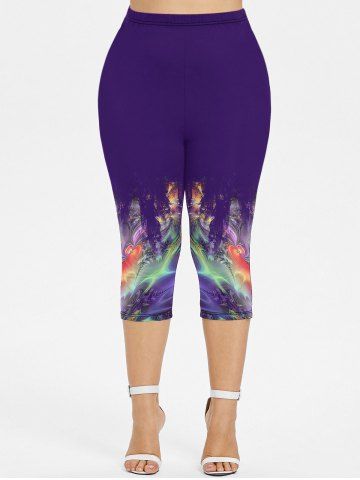 Plus Size Glitter Swirls Print Capri Leggings - Concord - Xs