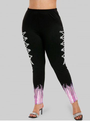 Graphic Leggings > Plus Size Grommets Lace Up Sparkling Sequin Glitter 3D Print Leggings