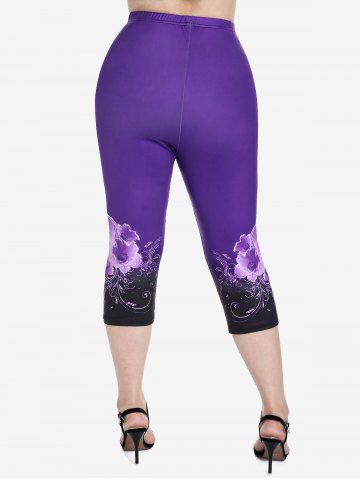 Plus Size Heart Print High Waist Capri Leggings - Concord - 3x | Us 22-24
