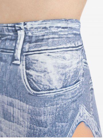 Short Sleeve 3D Denim Print Tee and High Waist 3D Denim Print Jeggings Plus Size Outfit