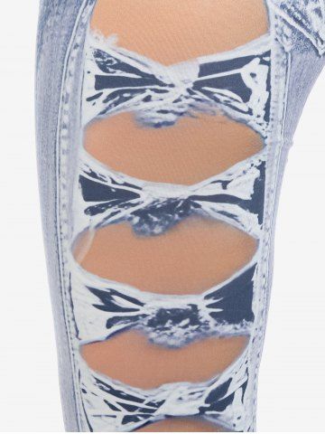 Plus Size High Rise 3D Denim Print Skinny Jeggings
