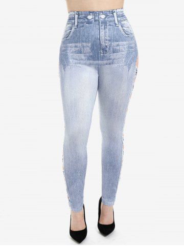 Graphic Leggings > Plus Size High Rise 3D Denim Print Skinny Jeggings