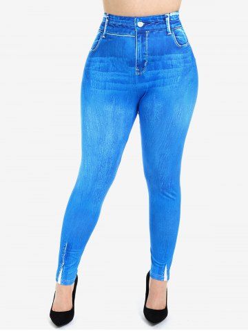 h*****05Plus Size High Rise 3D Denim Print Skinny JeggingsColor: BLUE Size: 5X | US 30-32The silky feel of these pants combined with the illusion of being actual jeans is astonishing! I received many compliments when I wore these jeggins. Plus, I paired them with the denim top. It made me feel great. n I ordered 4X because I followed the size chart for each item. Size comparison is a 2x at WW and LB just for reference.