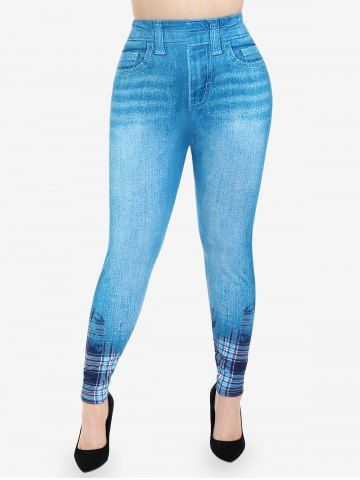 Graphic Leggings > Plus Size High Rise Plaid 3D Denim Print Skinny Jeggings