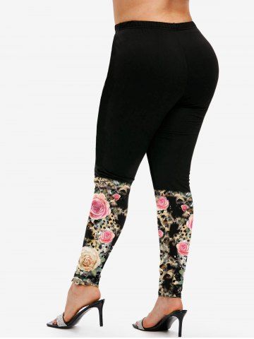 Graphic Leggings > Plus Size High Rise Rose Leopard Print Skinny Leggings