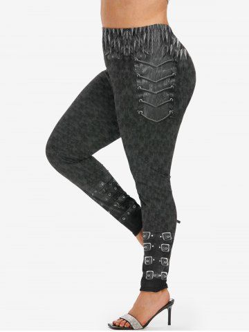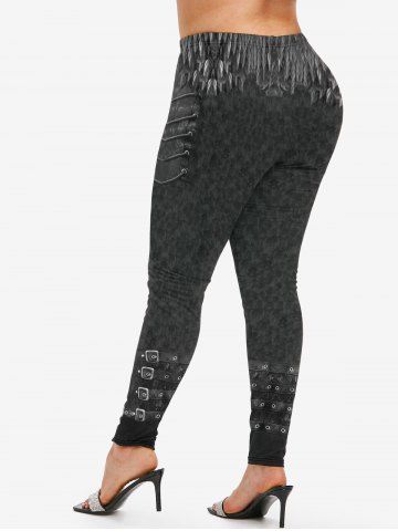 Graphic Leggings > Plus Size High Waist 3D Buckled Denim Print Skinny Jeggings