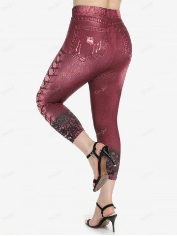 m*****r5Twist Cropped Tee and Ruffled Tank Top Set and High Waisted 3D Denim Capri Jeggings Plus Size OutfitColor: DEEP REDThis is gotta be one of my favorite outfits you’re so cute so comfy too