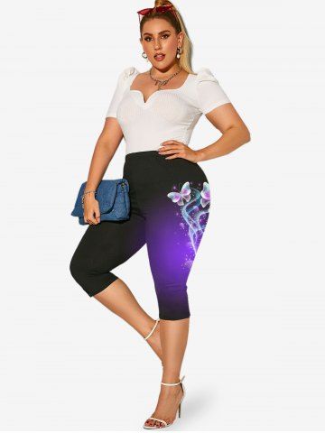Graphic Leggings > Plus Size High Waist Butterfly Print Capri Leggings