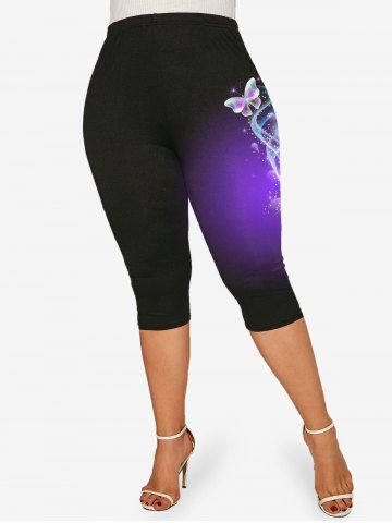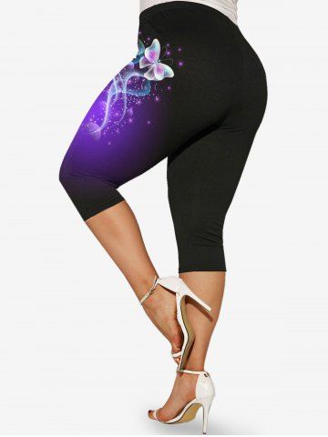 Plus Size High Waist Butterfly Print Capri Leggings