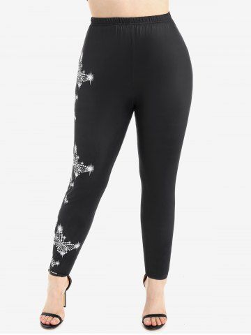Plus Size High Waist Butterfly Print Skinny Leggings - Black - 4x | Us 26-28