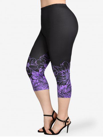 Plus Size High Waist Floral Print Skinny Capri Leggings - Purple - M | Us 10