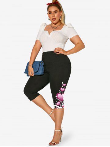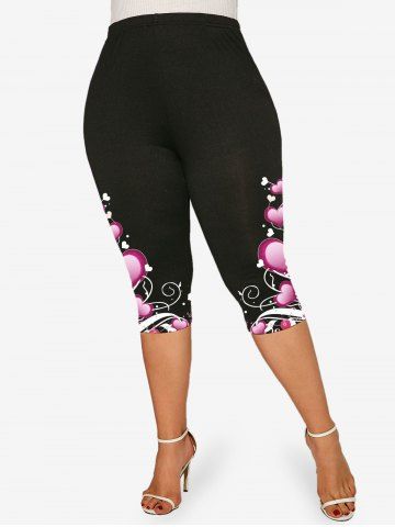 Plus Size High Waist Heart Print Skinny Capri Leggings - Black - 1x | Us 14-16