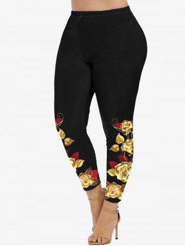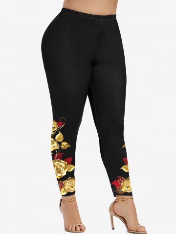 Graphic Leggings > Plus Size High Waist Rose Print Skinny Ninth Leggings