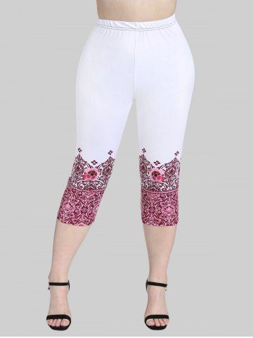 Plus Size High Waist Tribal Floral Print Capri Leggings - White - M | Us 10